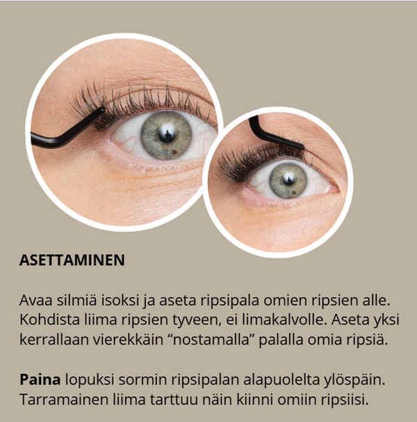 • Sopivat herkille silmille – tarramainen liimapinta on hyvin siedetty ja sopii myös pidennysliimoille herkistyneille sekä piilolinssien käyttäjille